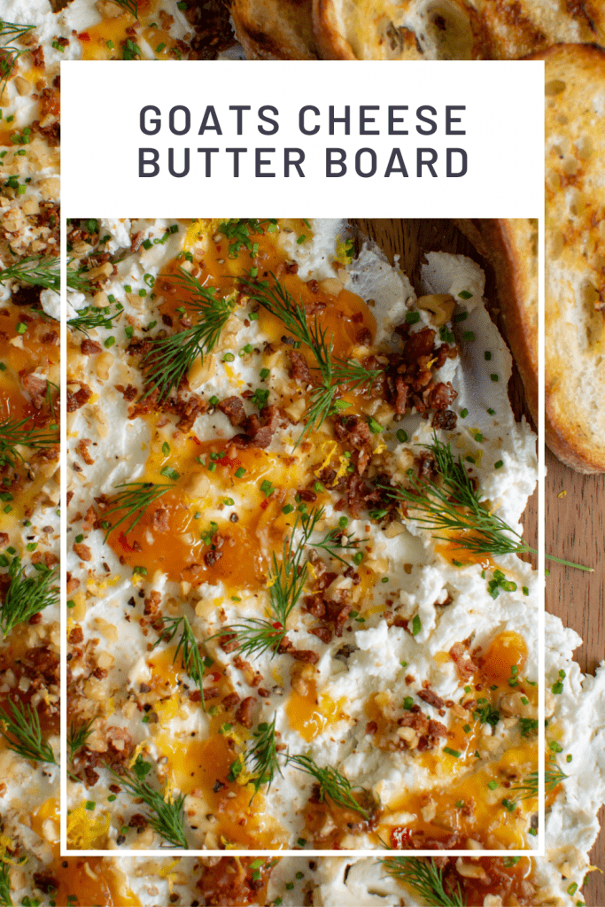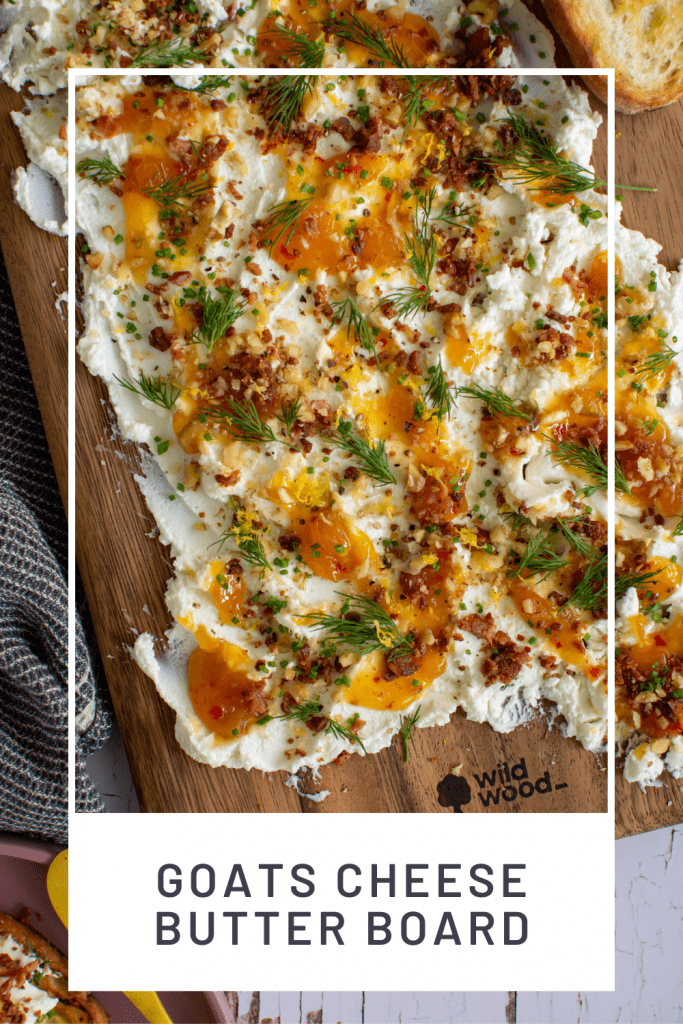 The sheer beauty of this recipe is its simplicity! I’ve put together my favourite toppings for this particular goat’s cheese butter board, but if you keep scrolling, you will find some delicious alternative options you can add too.