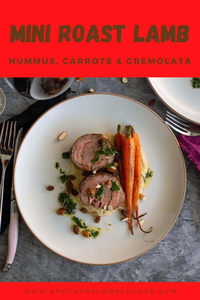 For this lamb shoulder dish I served it with a delicious homemade lemony hummus, some simple roasted carrots that I hit with a little honey at the end, toasted almonds for some texture and a delicious gremolata for freshness and acidity.